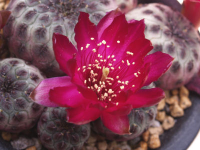 良品交換会(競り)もありますので気軽に参加して下さい。画像は私が育てているラウシーです。株本体よりも大きいくらいの紅い花を咲かせました。スルコレブチアは意外と花が派手ですね。
