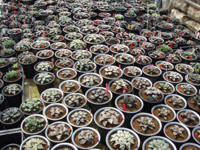 良品交換会(競り)もありますので気軽に参加して下さい。画像はバスツアーでお邪魔したカクタス・ニシさんのハオルチア温室の一部。見応な株ばかりでした。